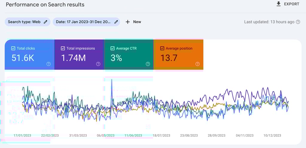 Drove a significant increase in organic traffic, as evidenced by Google Search Console data (see screenshots below)